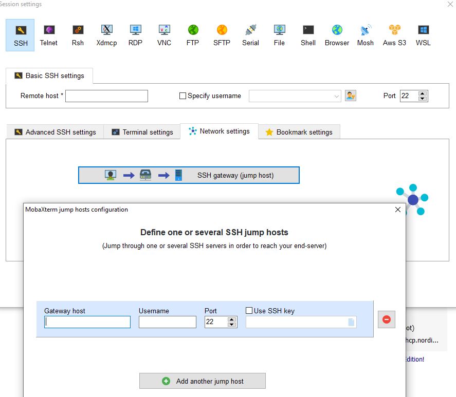 또 한가지 업무상 ssh를 여러번 접속해야하는 경우가 많은데, 자주 들어가는 ssh에 session에 ID/PW를 저장할 수 있어 편하다. 그리고 ssh gateway목적으로 ssh에 접속한 후 해당 네트워크에서 연결된 다른 ssh로 점프할 수 있는 기능까지 있어 편리하다.
