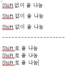 Shift+Enter: Confluence나 wiki 혹은 MS-word 등에서 엔터는 줄 나눔을 뜻한다. 하지만 여기에 shift를 붙이면 간격 없이 줄 나눔을 할 수 있는데, 이러면 글 쓸 때 굉장히 깔끔해진다.